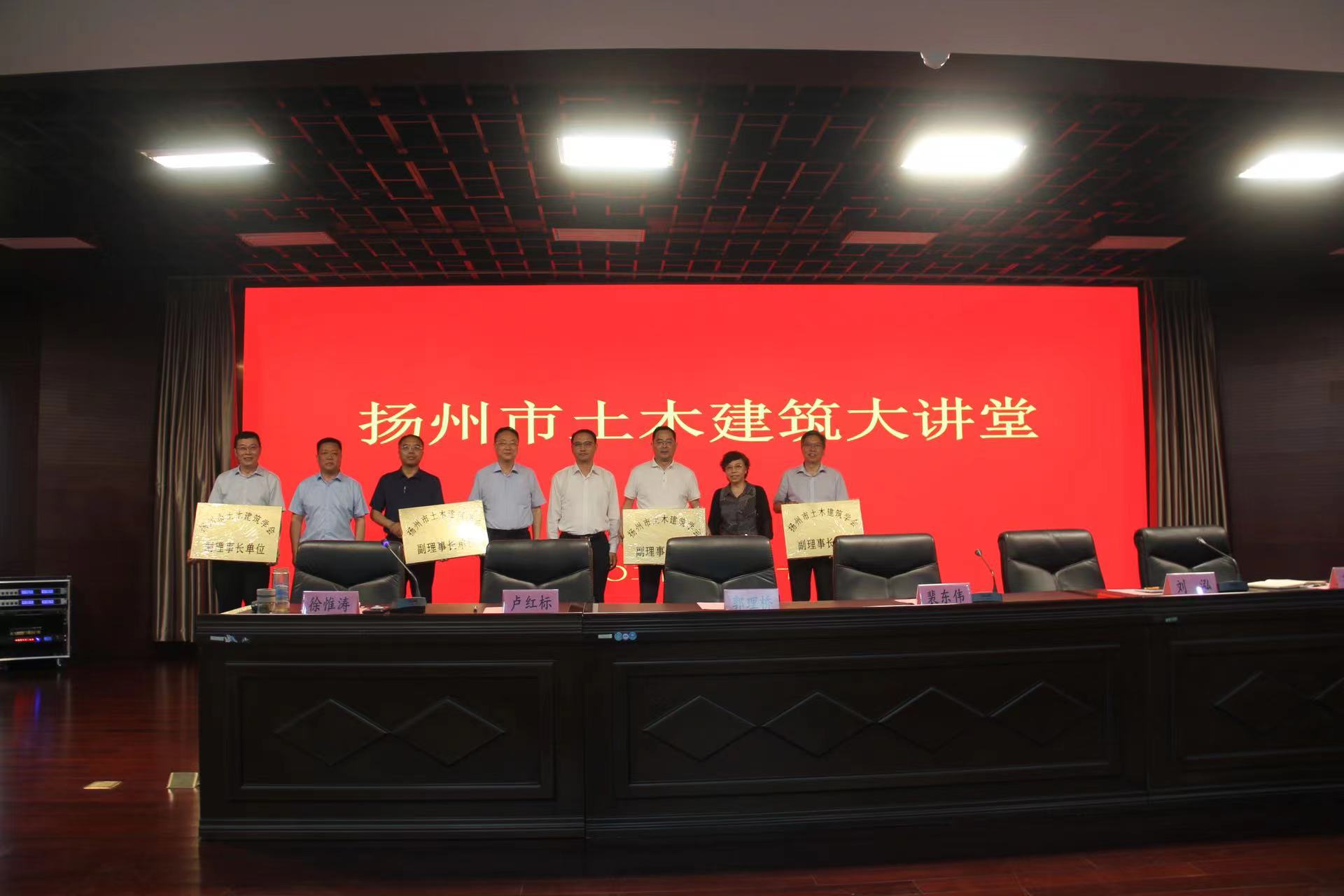 6月11日,由扬州市土木建筑学会主办的第六届土木建筑大讲堂在集团公司21楼会议室开讲。本次活动为江苏华建、扬建集团、邗建集团、扬州市建筑设计研究院等四家副理事长单位进行了授牌,邀请了原住建部科技司副司长、同济大学环境科学与工程学院教授、长三角可持续发展研究院副院长郭理桥做题为《城市可持续韧性发展的思考》的专题讲座。市政府副秘书长裴东伟、省土木建筑学会秘书长卢红标出席活动并讲话。讲堂由扬州市土木建筑学会理事长徐惟涛主持,市住建局副局长刘泓,集团公司党委书记、董事长范世宏,土木建筑学会会员单位以及从事土木建设的相关专业人员参加活动。